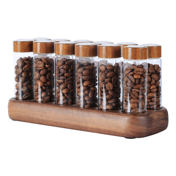 T kính cà phê đậu hiển thị Jar 12 ống cơ sở bằng gỗ cà phê đậu lưu trữ ống hộp cho các công cụ cà phê